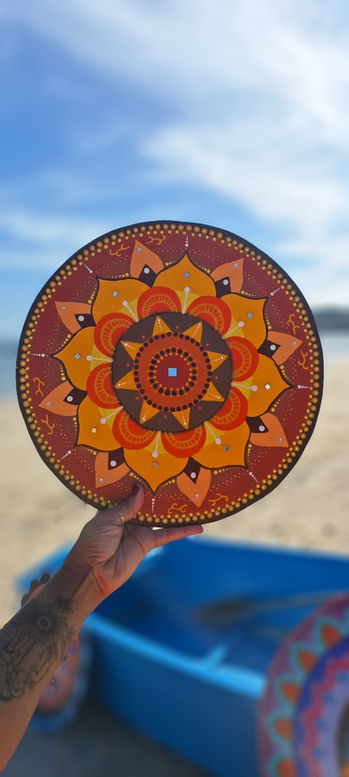 Em minhas criações, utilizo a mandala como linguagem artística e também como ferramenta terapêutica, capaz de transformar espaços e despertar sentimentos de paz, harmonia e contemplação.